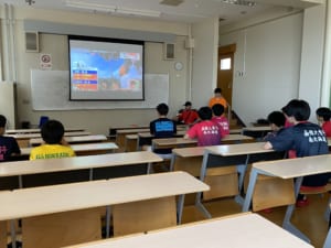 視聴覚室を利用して、一流アスリートの思考力を学んでいます。
